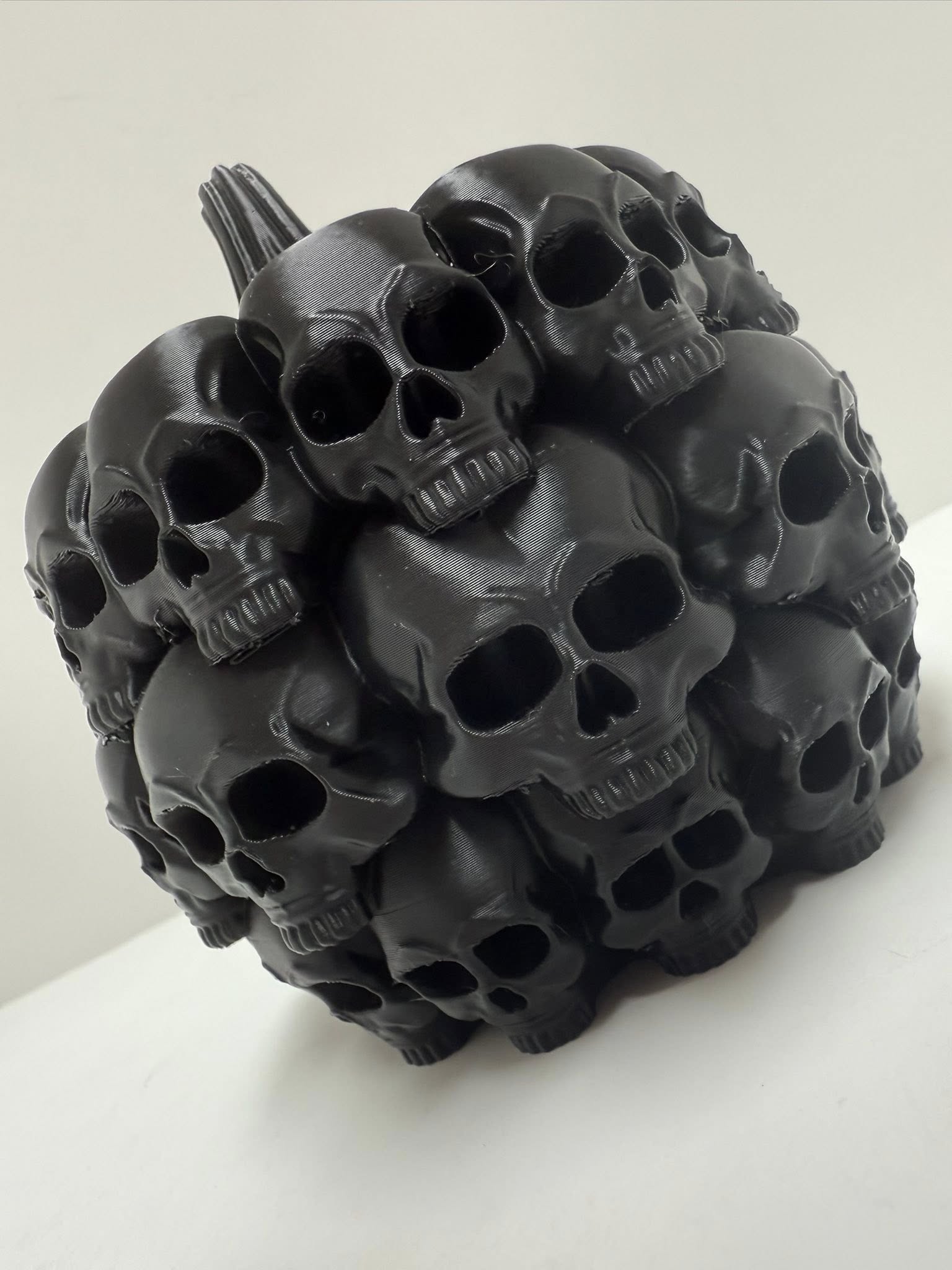 3D Printed Black Skull Pumpkin – Spooky & Stylish Decor