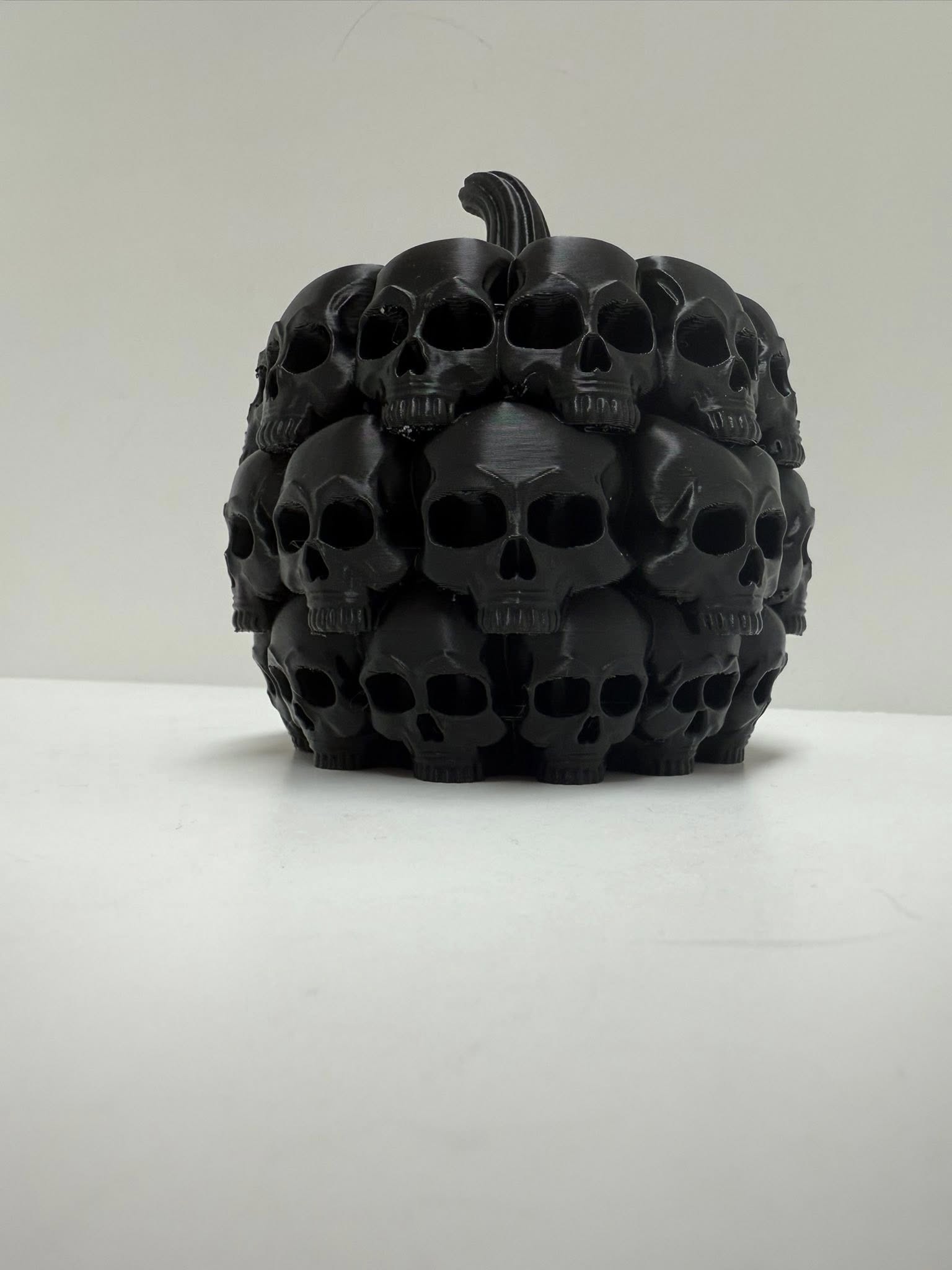 Add a dark, eerie twist to your Halloween or gothic decor with this 3D printed Black Skull Pumpkin. Expertly crafted with precision 3D printing, it combines the iconic pumpkin shape with a menacing skull design, creating a striking piece that’s perfect for display on shelves, desks, or as part of your seasonal decorations.