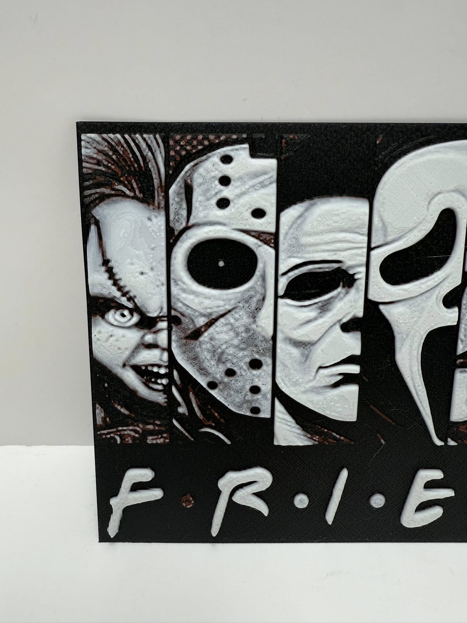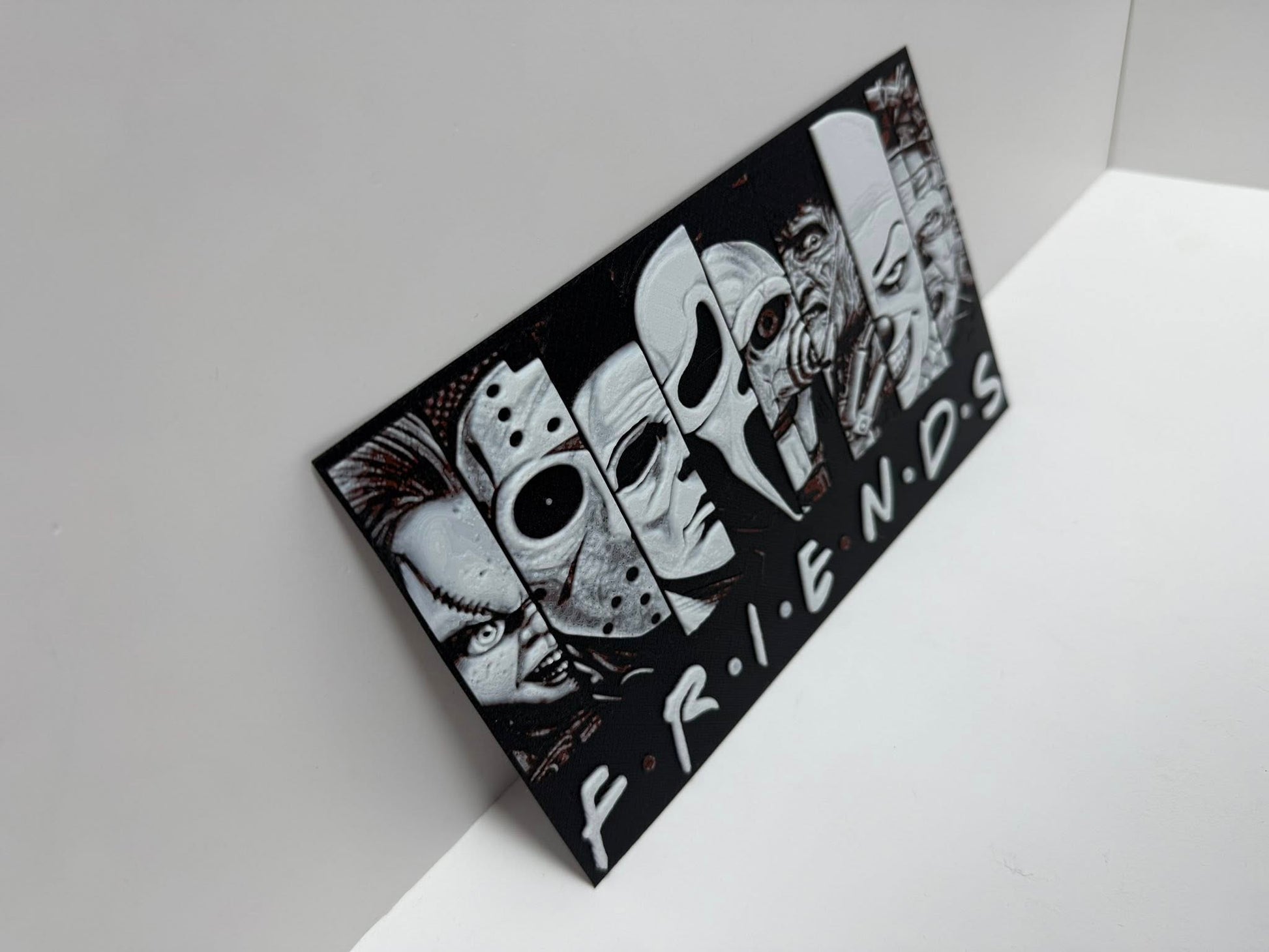 Add a chilling twist to your favourite sitcom with this 3D printed Friends Horror Sign! Perfectly blending nostalgia and horror, this detailed piece transforms the iconic Friends logo into a spooky statement for any room. Ideal for collectors, horror fans, or anyone looking to add a unique touch to their decor.