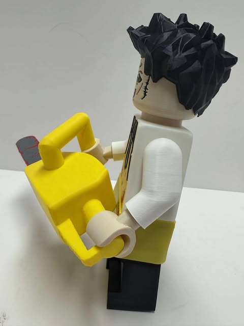Bring brutal horror icon energy to your collection with this 22cm Leatherface Brick Man, complete with his signature chainsaw. Styled in a bold brick-inspired design, this figure captures the menacing look of Leatherface with detailed clothing, mask sculpting, and a chunky brick-style chainsaw accessory.