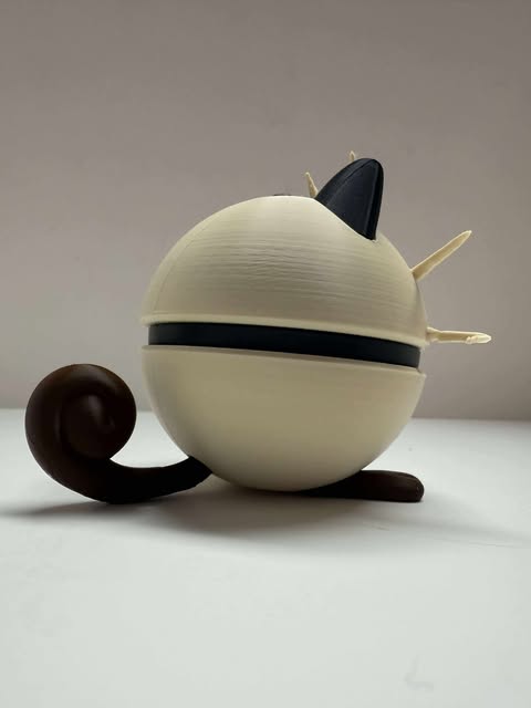 Printed with high-quality filament for crisp detail and durability, this piece makes the perfect addition to any desk, shelf, gaming area, or themed display. The smooth spherical design gives it a premium, modern look, while Meowth’s expressive pose adds charm and attitude.